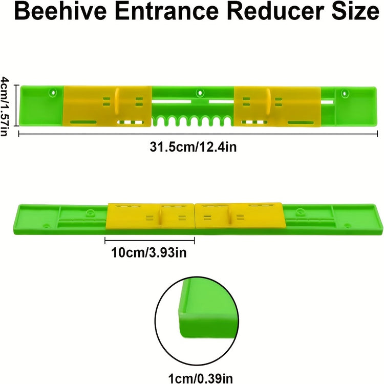 The Beehive travel gate is designed to fit the space between the base of the beehive and the initial brooding area. You can easily adjust the size of the beehive opening by sliding the paddle side to side. This allows bees to come and go as necessary while keeping them from escaping. This entrance reducer covers the hive's entrance to stop mice from getting in, while still giving bees unrestricted access. It's a useful tool for beekeepers.