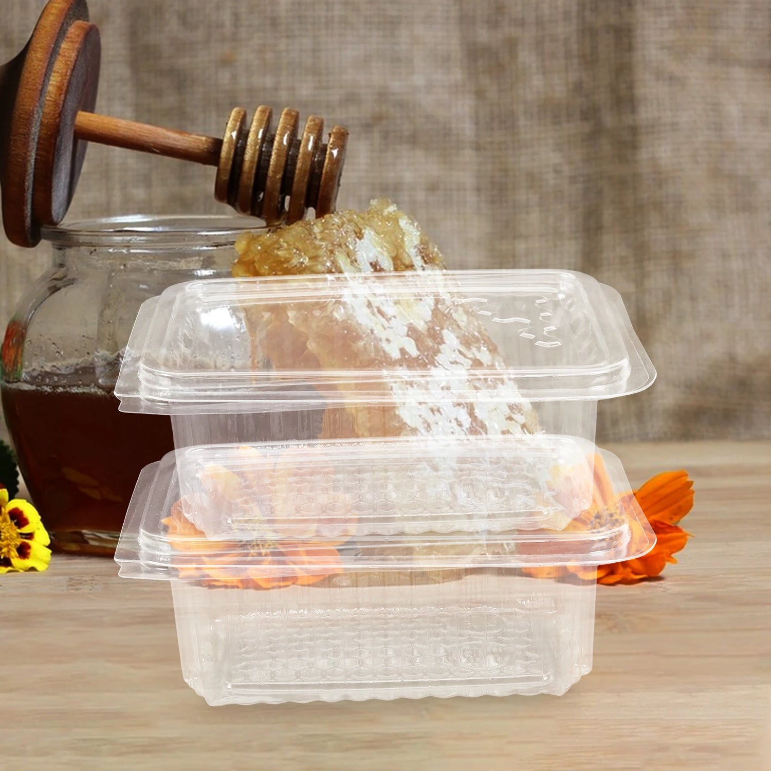 Designed with practicality in mind, this honey storage box with lid is great for keeping your honeycomb safe and fresh. The clear plastic construction allows for easy identification of the contents, while the secure lid ensures that the honey is protected from other things. This honey keeper is an essential tool for any beekeeper looking to maintain the quality of their small with lid