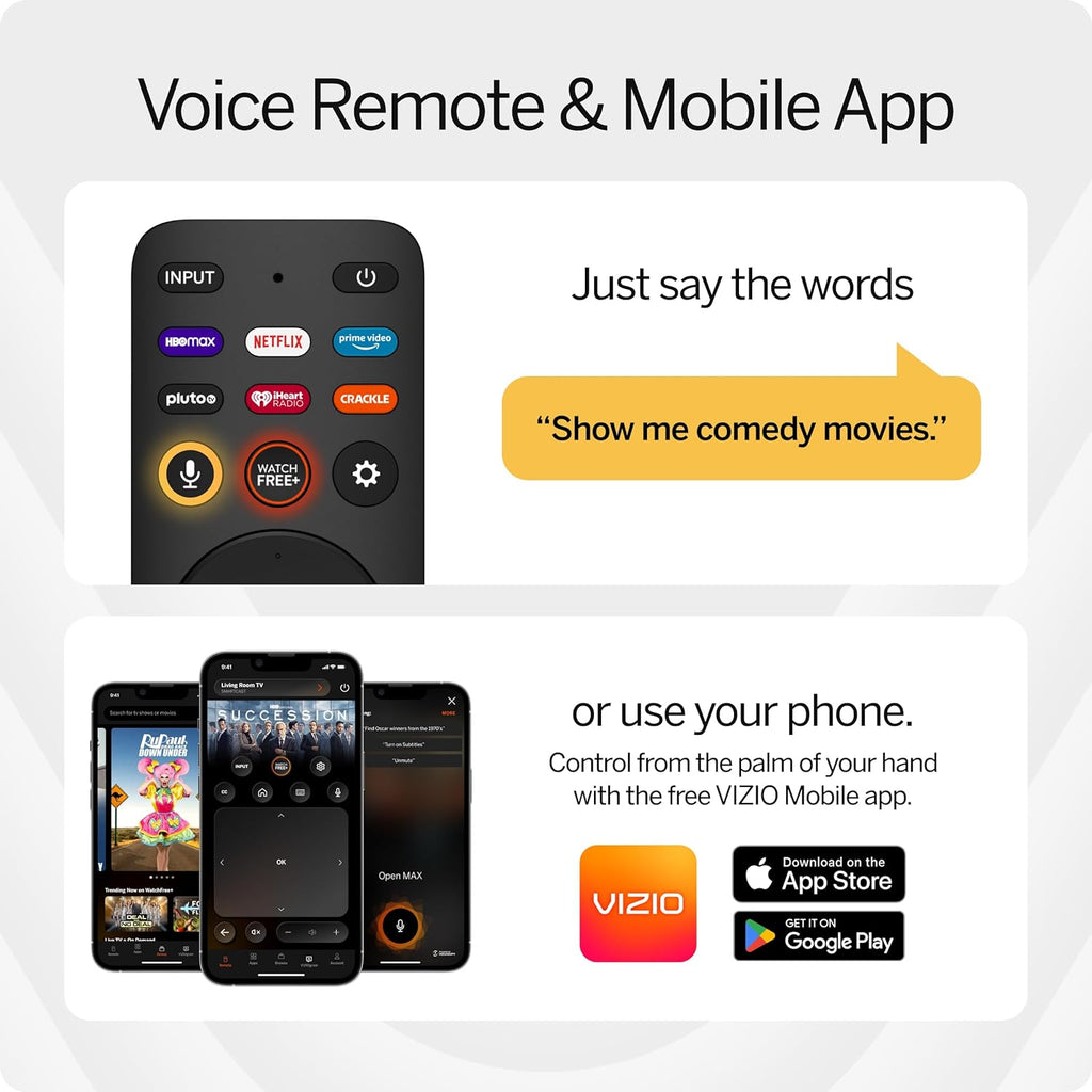 Escape into awesome entertainment with the VIZIO V-Series 4K UHD Smart TV. With epic 4K UHD picture quality, Dolby Vision and HDR10, a full array backlight, and active pixel tuning, V-Series provides crystal-clear and sharp picture quality. The next-gen speed and power of the VIZIO IQ Active processor brings astonishing detail and vibrancy to your viewing experience. Take your gaming to a whole new level with the V-Gaming engine which enables sub 10ms input lag, 4K 48-60 fps Variable Refresh Rate, Auto Game Mode, and a newly added gaming menu. Stream it all with the award-winning SmartCast platform loaded with the best selection of built-in apps including WatchFree+ that lets you enjoy free access to live TV and hundreds of free channels right out of the box. SmartCast also works with Apple AirPlay 2 and Chromecast built-in, offering unparalleled entertainment in a size that fits your lifestyle. V-series is everything you need and more in a Smart TV delivering a standout experience at an unmatched price. 1 month promotional period of discovery+ (ad-supported) available to those that purchase and activate a new VIZIO TV by 10/22/2022 and redeem promotion by 11/22/22.* *CANCEL BEFORE 1-MONTH PROMOTIONAL PERIOD ENDS TO AVOID AUTOMATIC MONTHLY FEES. New eligible subscribers only. Taxes apply. Terms apply.