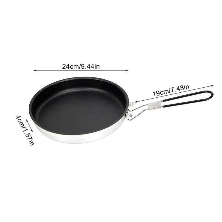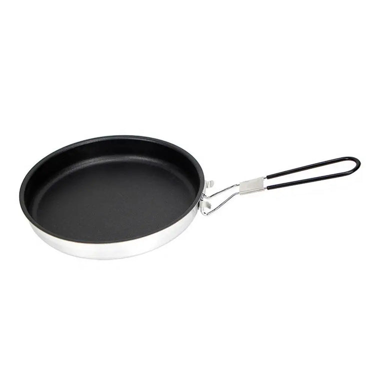 Nonstick Frying Pan is portable and easy to clean, is designed with a rubber-layer handle to prevent your hands from scalding, and has a foldable handle for convenient storage and carrying. Non Stick Fry Pan is suitable for camping, hiking, backpacking, picnic, etc., and can be used with induction stoves, ceramic stoves, gases stoves, and electric stoves. (not suitable for ovens)