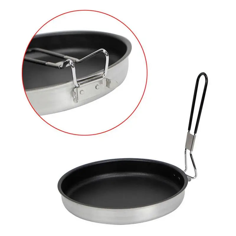 Non Stick Frying Pans Portable Alloy Non Stick Skillet With Foldable Handle 24cm Camping Coated Pan Camp Cookware For Hiking