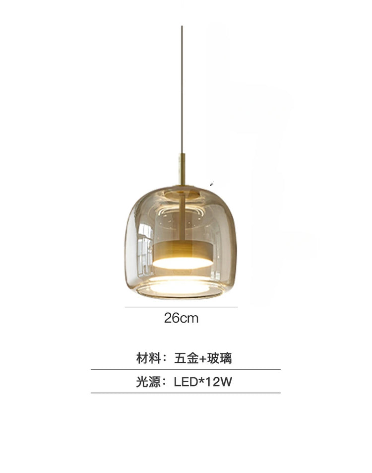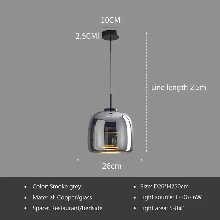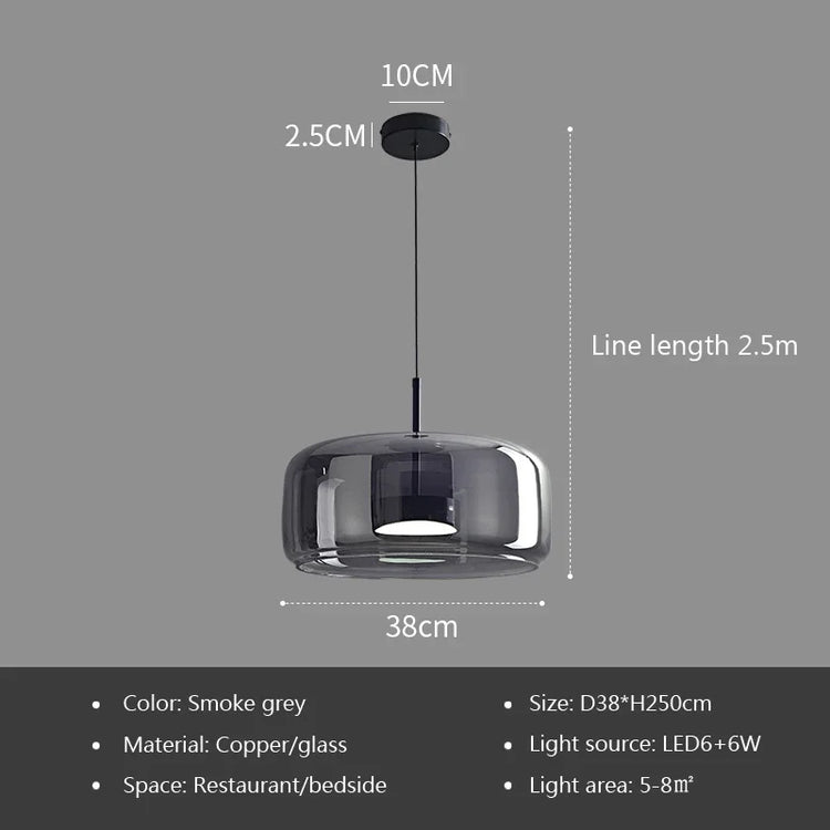Nordic Glass Led Pendant Light Light Luxury Smoke Grey Hanging Light Fixtures Bedroom Modern Luminaire Suspension Lamp