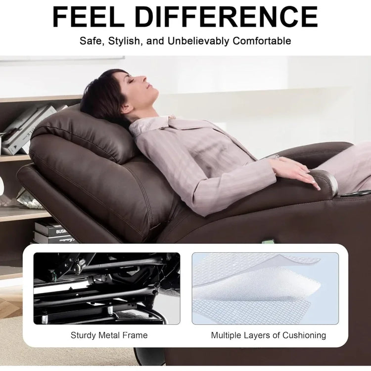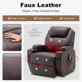 • Superior Material: The Swivel Rocker Recliner is designed with comfort and quality in mind. Made from premium faux leather, which is durable, easy to clean, and water-resistant, the recliner chairs for adult cushions are thick padded with high-density sponges that offer excellent support while sitting. The high-resilience sponges ensure the reclining chair remains comfortable over time, conforming to your body and providing a cozy seating experience.