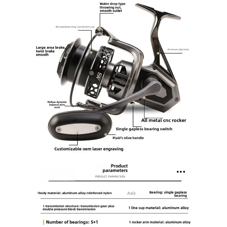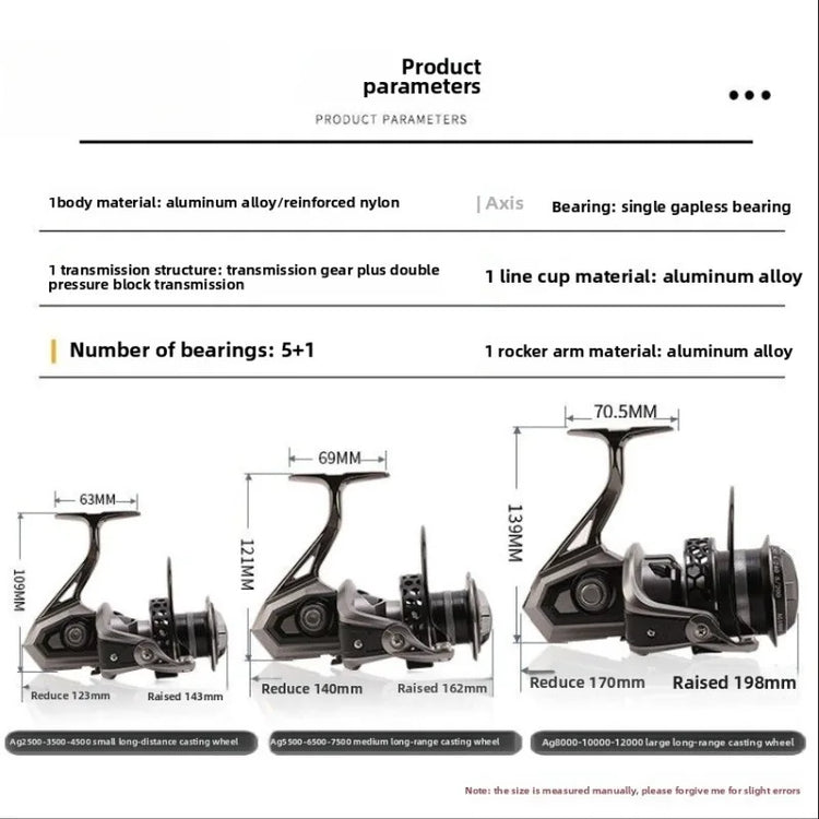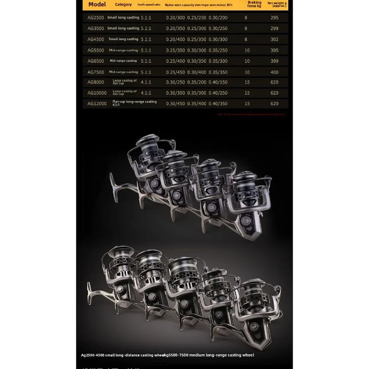 SPINNING REEL Fishing AG2500/AG3500/AG4500AG5500AG6500/AG7500/8000/10000/12000 Spinning Reel Smooth - Running Fishing Reel